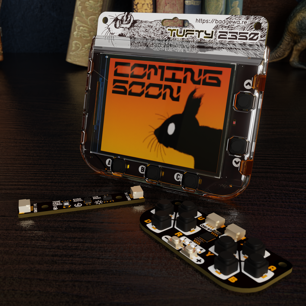 Tufty 2350 is an all-in-one badge wearable with a vibrant 2.8" IPS LCD screen, built-in rechargeable battery and sturdy polycarbonate case. Hang it round your neck with the (included) Tufty lanyard or prop it up on your desk - either way it's ready to go straight out of the box. It's way more than just a event badge too - the colour screen would also be great for displaying art, tiny games or sensor dashboards.