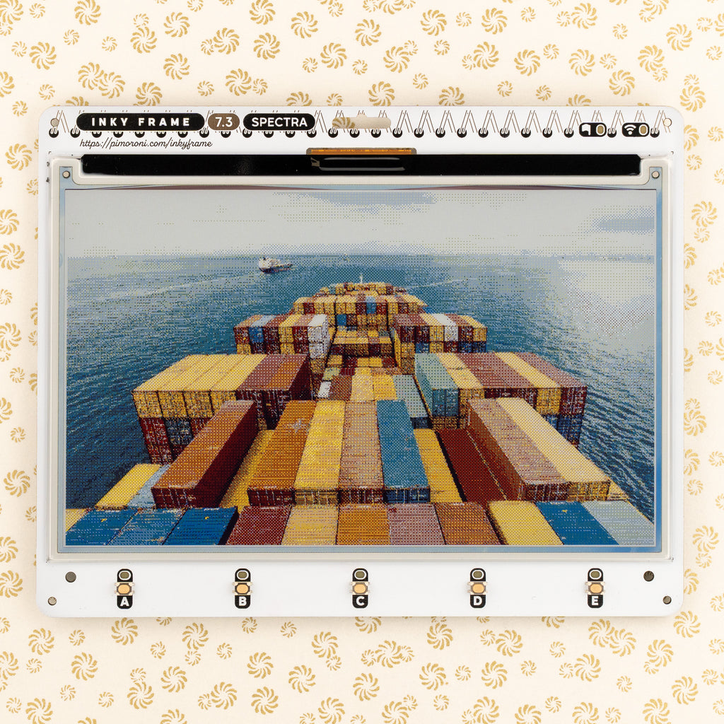There's a new ePaper screen in town, and it's a biggie! Inky Frame 7.3" features a super crisp E Ink display with 800 x 480 pixels of six colour goodness. We've added five buttons with LED indicators for interacting with the display, two Qw/ST connectors for plugging in breakouts and a micro SD card slot for storing photos of fond maritime adventures (or whatever floats your boat).